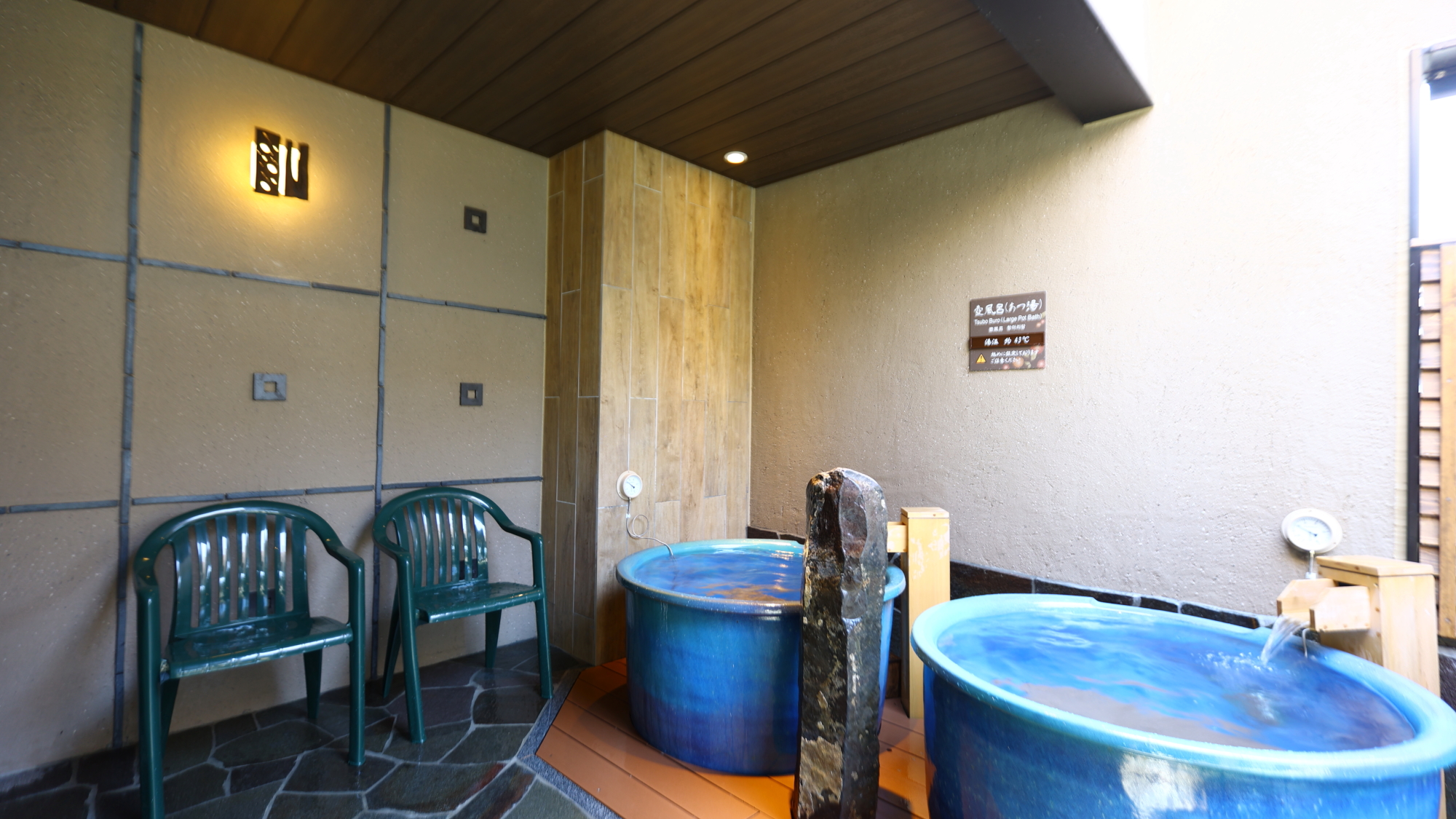 女性の場合、ととのい椅子は、屋外の壺風呂の横に2脚設置。